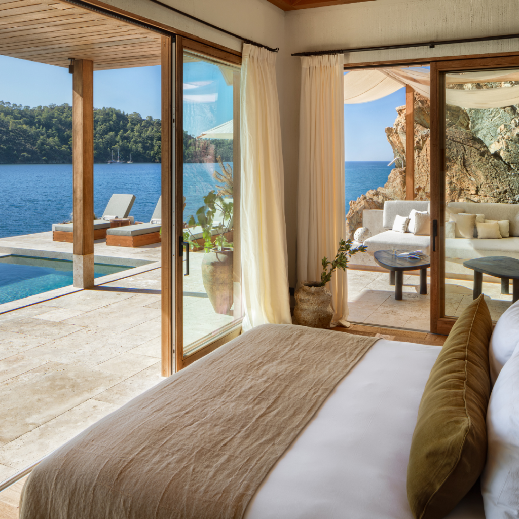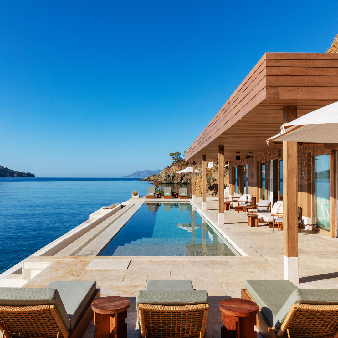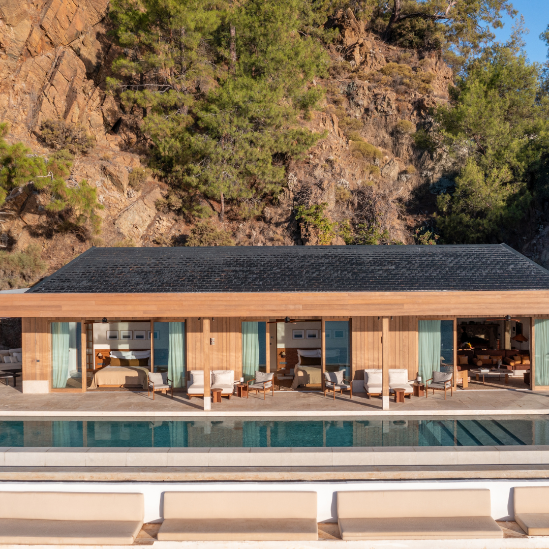Zwischen sanften Hügeln und dem leisen Atem des Meeres liegt Ahama Living – ein Ort, an dem Zeit sich weitet und Stille Form annimmt. Die Architektur verschmilzt mit der Landschaft: klare Linien, helle Steinflächen, offene Räume, durchzogen von Licht und Wind. Der Duft von Thymian und warmem Holz begleitet jeden Schritt; Glasflächen öffnen den Blick auf das Meer, das in weichen Tönen schimmert. Hier ist alles auf das Wesentliche reduziert – auf Raum, Licht und das Gefühl, angekommen zu sein.