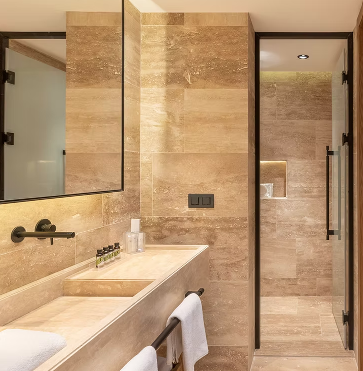 75 m², weitläufige Terrasse mit Meerblick, großzügiger Wohn- und Schlafbereich, luxuriöses Badezimmer mit freistehender Badewanne und Regendusche, Doppelwaschtisch, Kingsize-Bett, zwei Smart-TVs, Highspeed-WLAN, Kaffeemaschine, Minibar, Safe, Klimaanlage, separate Lounge, elegantes Design in hellen Naturtönen