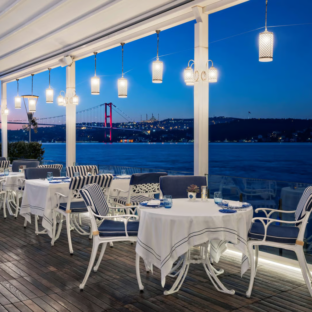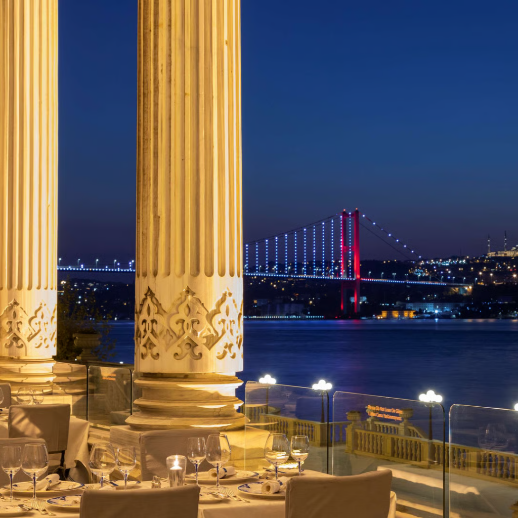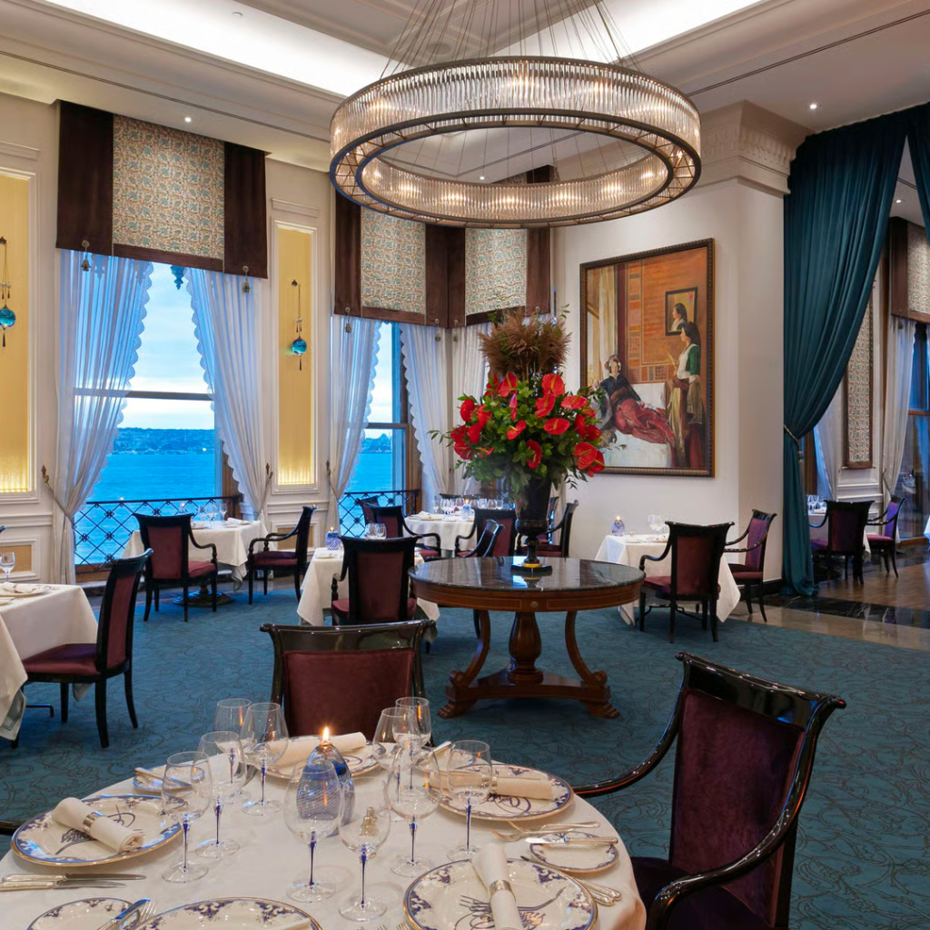 Im Ciragan Palace Kempinski Istanbul wird Kulinarik auf höchstem Niveau zelebriert. Die vielfältigen Restaurants und Bars verbinden osmanische Tradition, moderne Gourmetküche und die unvergleichliche Kulisse des Bosporus. Jeder Ort erzählt seine eigene Geschichte – von majestätischen Fine-Dining-Erlebnissen bis zu stilvollen Lounges und mediterranen Momenten direkt am Wasser.