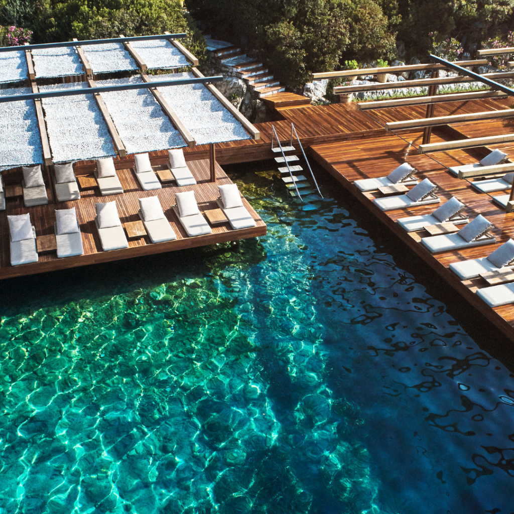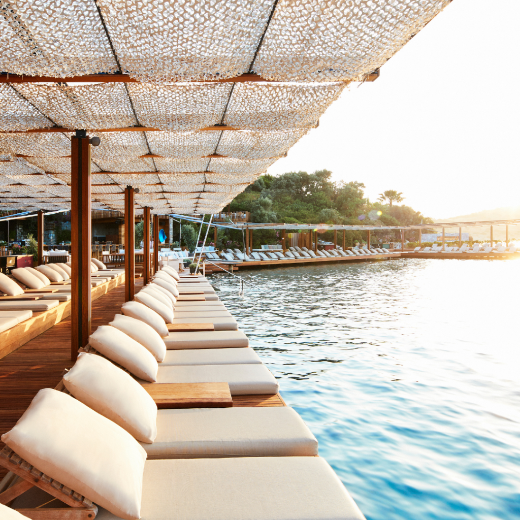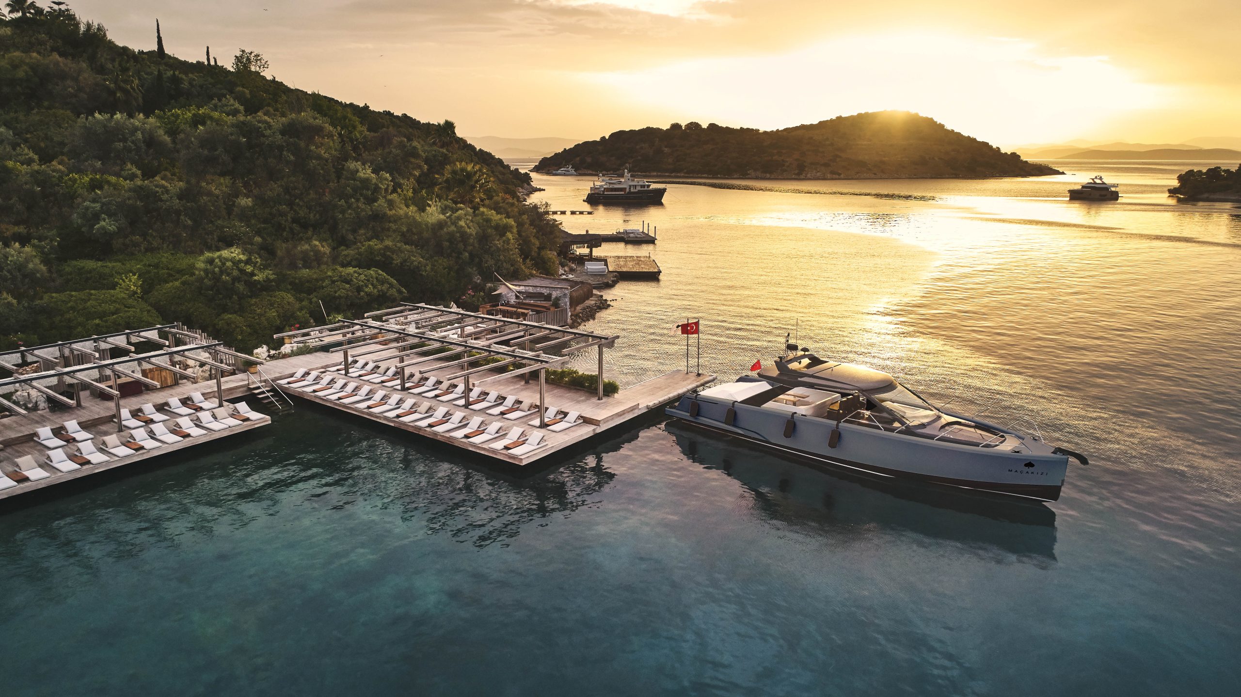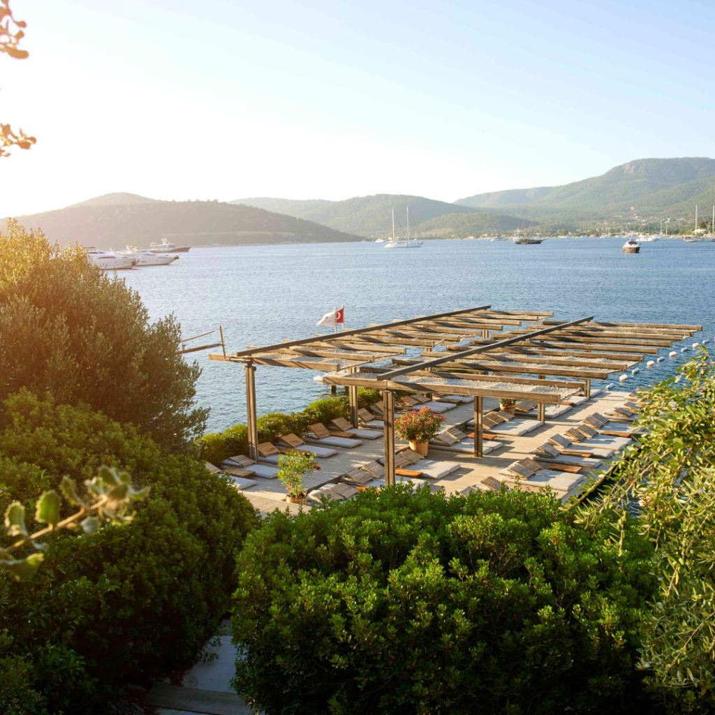 Am Hang von Türkbükü, eingebettet zwischen Bougainvillea und Olivenhainen, liegt das Maçakizi – ein Ort der Ruhe, der Stil und Leichtigkeit neu definiert. Hier trifft das sanfte Blau der Ägäis auf puristische Eleganz, mediterrane Lebensfreude auf zeitlose Raffinesse. Architektur, Landschaft und Meer verschmelzen zu einer Harmonie, die man nicht nur sieht, sondern spürt.