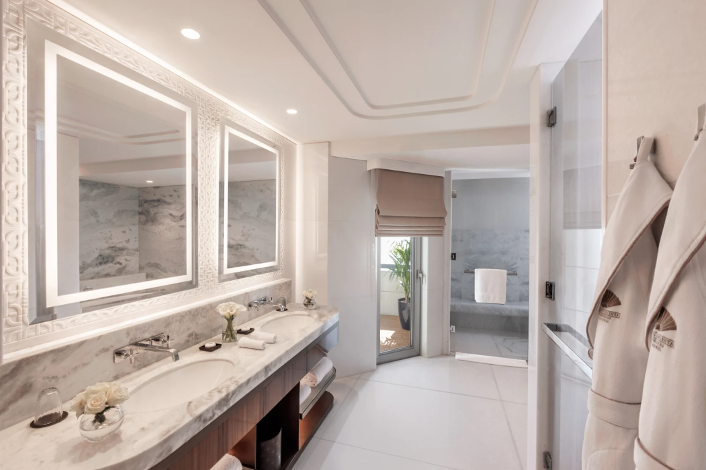 54 m², mit Blick auf den Bosporus, großzügigem Wohn- und Arbeitsbereich, privatem Balkon oder Garten, Parkettboden aus Walnuss, edle Metall- und Lederdetails, Badezimmer in Marmor mit Dusche oder Wanne, Ankleide, 24-Stunden-Service, Pillow Menu
